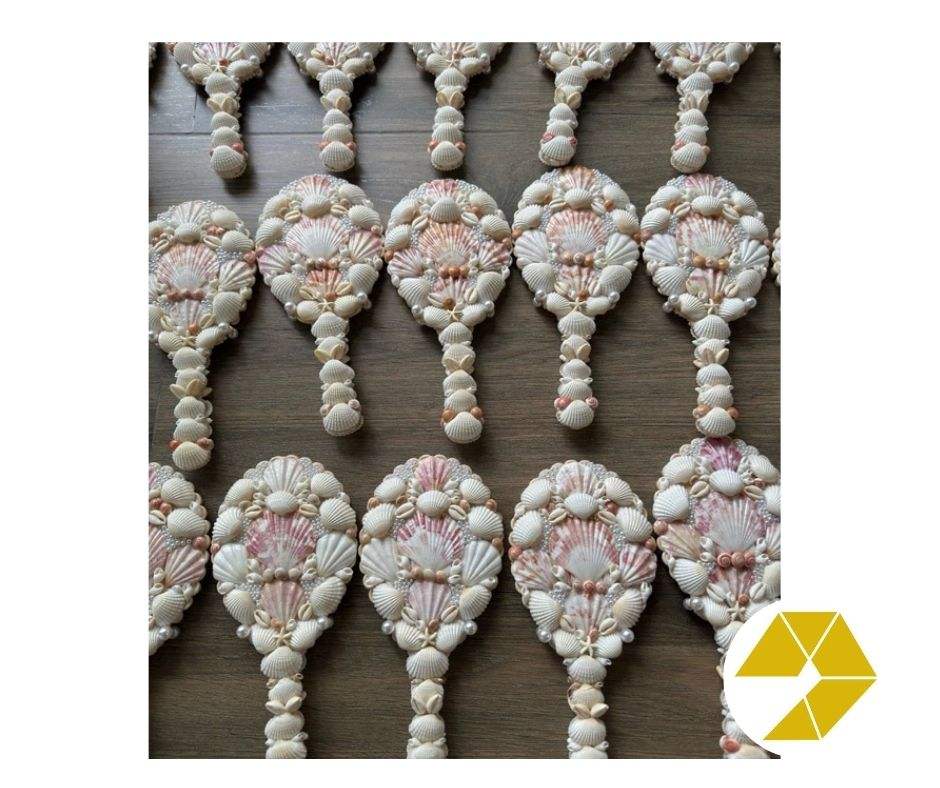 กระจกเปลือกหอยขนาดเล็กทำด้วยมือสำหรับขายเปลือกหอยธรรมชาติจากเวียดนามกระจกเปลือกหอยพับได้สำหรับสไตล์ชายทะเลในฤดูร้อน