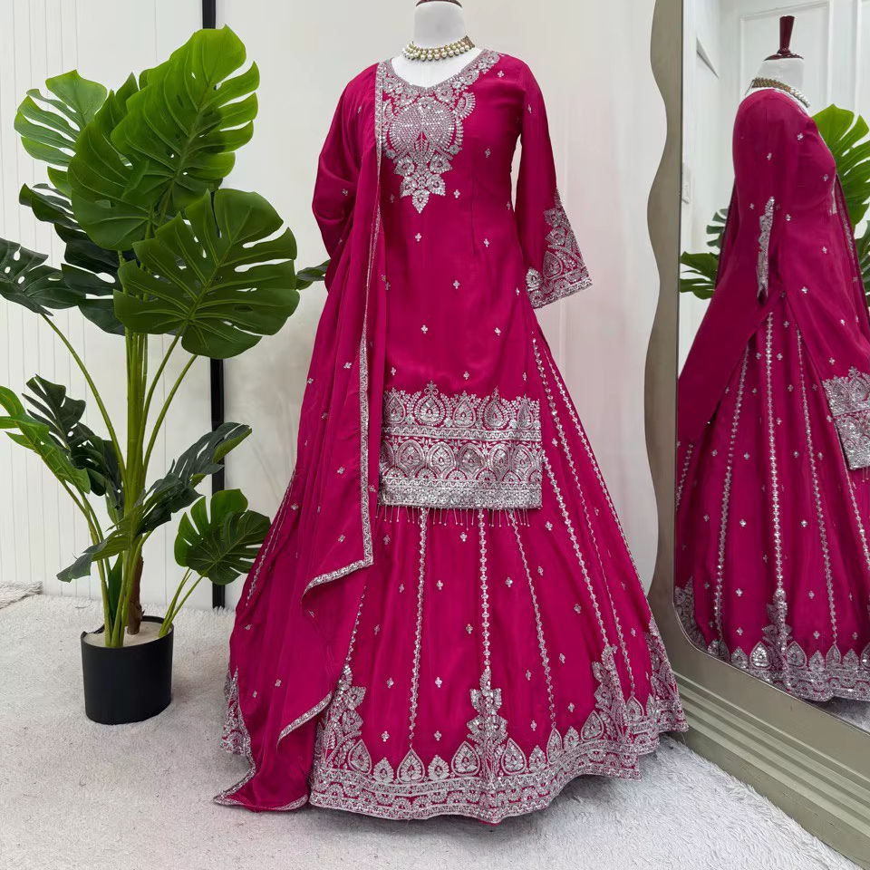 เลเฮนกาสำหรับผู้หญิง งานฝีมือสไตล์โมเดิร์นผสมผสานกลิ่นอายชาติพันธุ์ ผ้าจอร์เจตต์เทียมประดับเลื่อม เหมาะสำหรับงานดิวาลี งานแต่งงาน งานเลี้ยง งานรับปริญญา ฤดูใบไม้ผลิ ฤดูใบไม้ร่วง ฤดูร้อน ฤดูหนาว