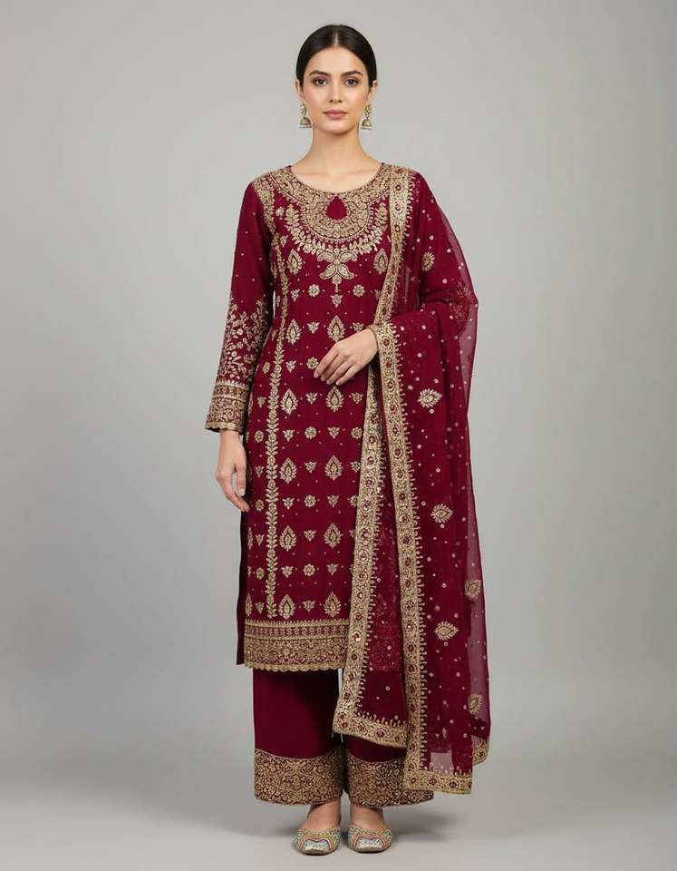 ผ้าเพนท์:ผ้าจอร์เจียสังเคราะห์เนื้อหนา ปักเลื่อมลายละเอียด 5 มม.