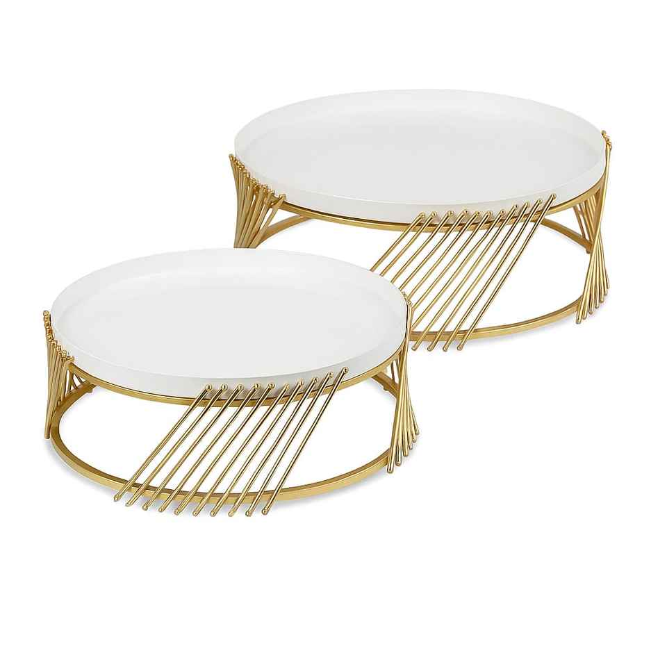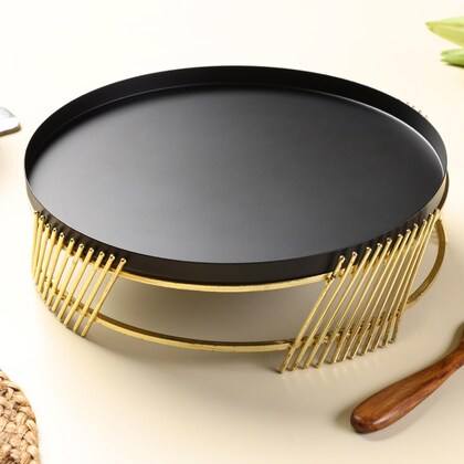 แท่นวางเค้กเหล็กรูปทรงเรขาคณิตแบบโมเดิร์นทำด้วยมือพร้อมผิวสีทอง | ถาดใส่ขนมหวาน