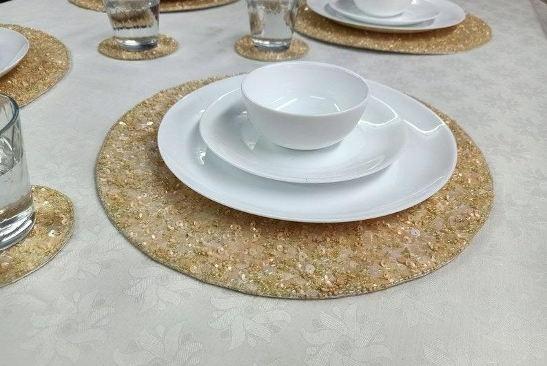 แผ่นรองจานทำมือ สไตล์โมเดิร์น หรูหรา เป็นมิตรกับสิ่งแวดล้อม ปรับแต่งได้ สำหรับตกแต่งโต๊ะอาหาร งานแต่งงาน คริสต์มาส งานเลี้ยงสังสรรค์ในครอบครัว
