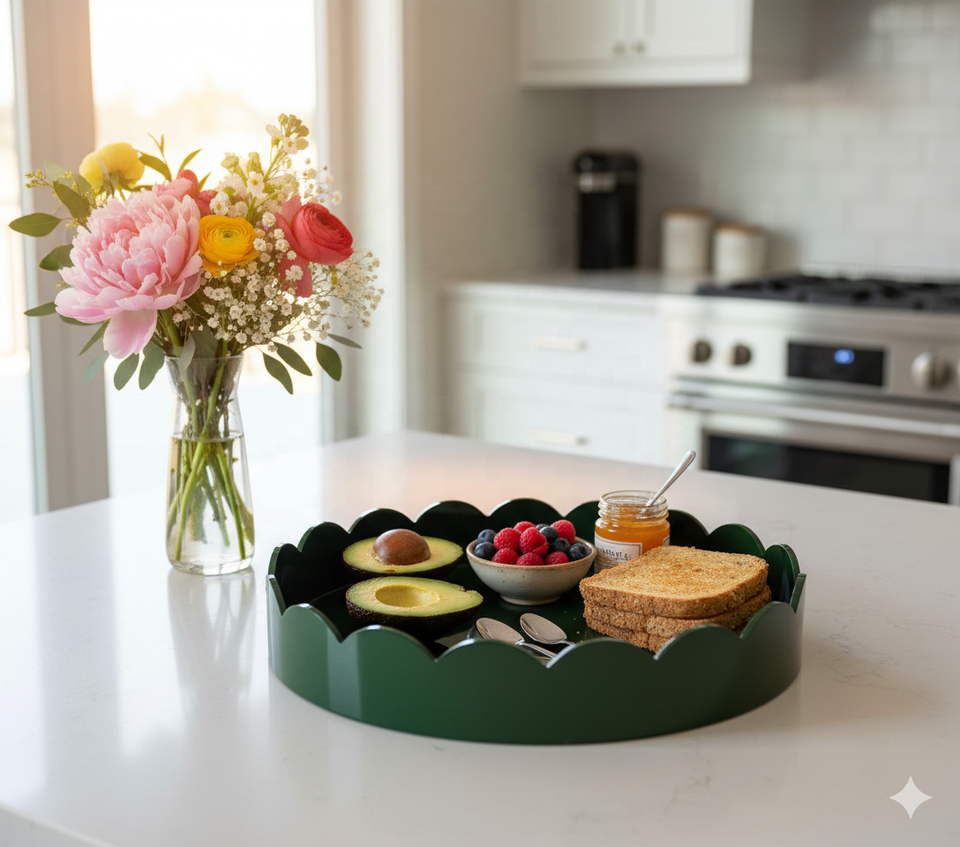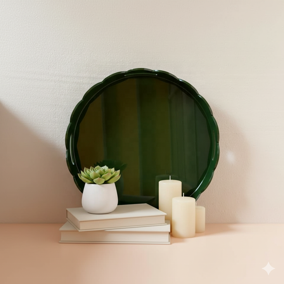 ถาดเคลือบแลคเกอร์สไตล์โมเดิร์นทำมือถาดกลมแต่งระบายด้วยลายหอยเชลล์ตกแต่งขอบแรงบันดาลใจจากดอกไม้