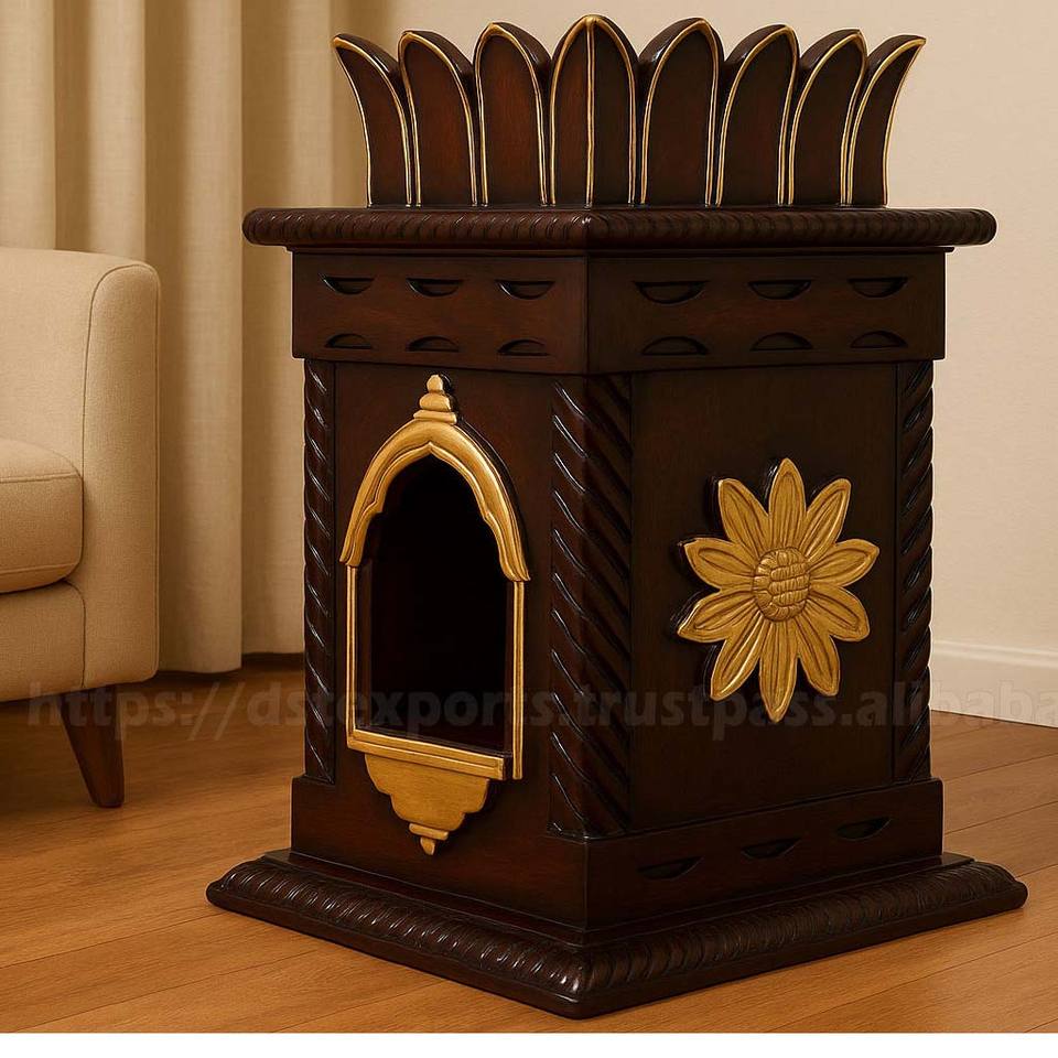 ไม้สักพรีเมี่ยมทำด้วยมือน้ำหนักเบาทนทาน Mandir Tuli vrindavan Stand hindu สำหรับบ้านกลางแจ้ง