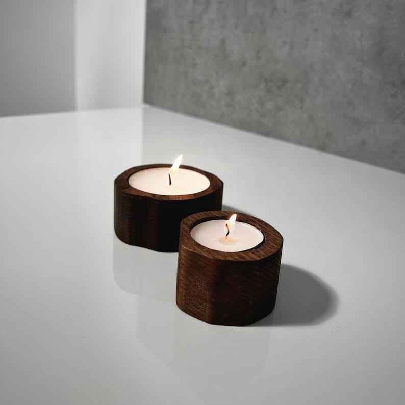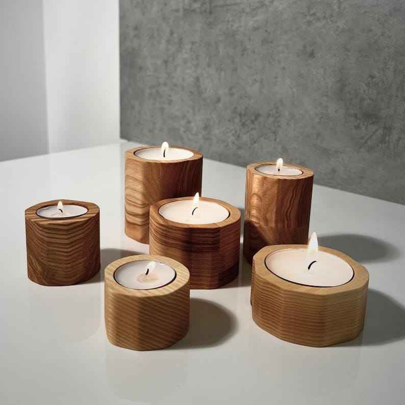ที่วางชาและเทียนไม้ทำมือสไตล์โมเดิร์น ดีไซน์ยุคกลางแบบสแกนดิเนเวียน สำหรับตกแต่งบ้าน