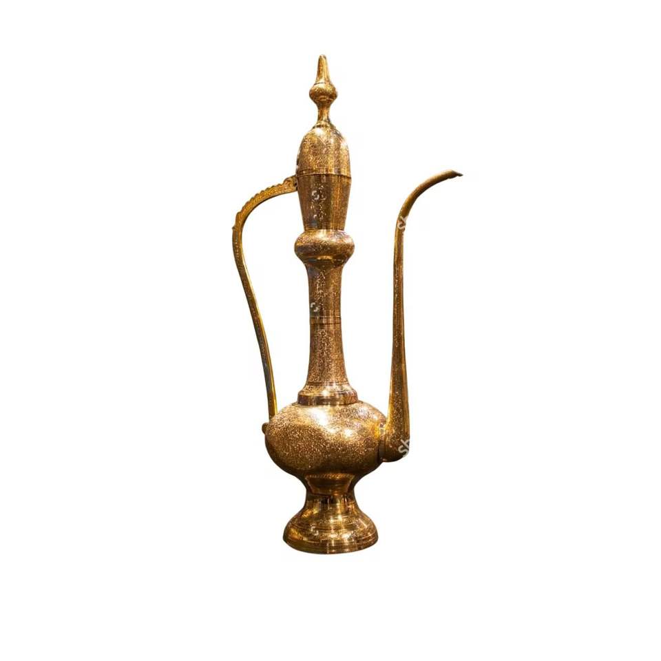 กาน้ำชาทองเหลืองโมร็อกโกทำมือ งานฝังลายแบบวินเทจ กาต้มน้ำชา/กาแฟแบบอาหรับ ของตกแต่งบ้าน/โรงแรม ของขวัญ
