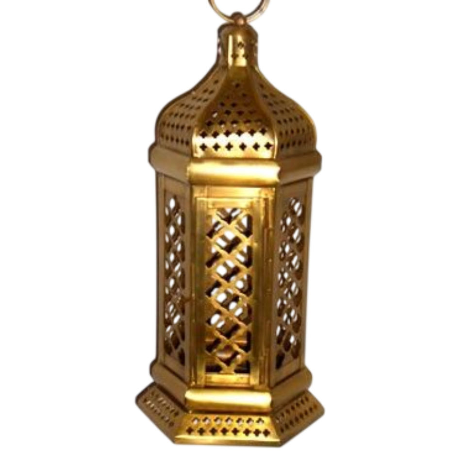 โคมไฟทองเหลืองสไตล์โมร็อกโกทำมือ งานฝีมือโบราณ สีทอง ใช้แขวนหรือตั้งได้ ตกแต่งบ้าน พร้อมที่ใส่เทียนชา