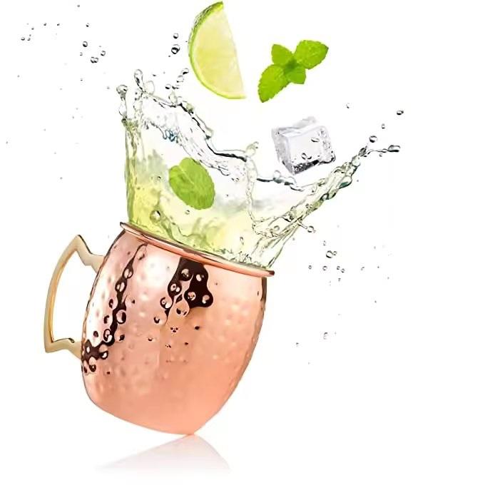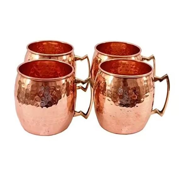 แก้วมักมอสโกทำด้วยมือทำจากทองแดงบริสุทธิ์พร้อมด้ามทองเหลืองแก้วเครื่องดื่มสำหรับปาร์ตี้และเครื่องดื่มแก้วเบียร์