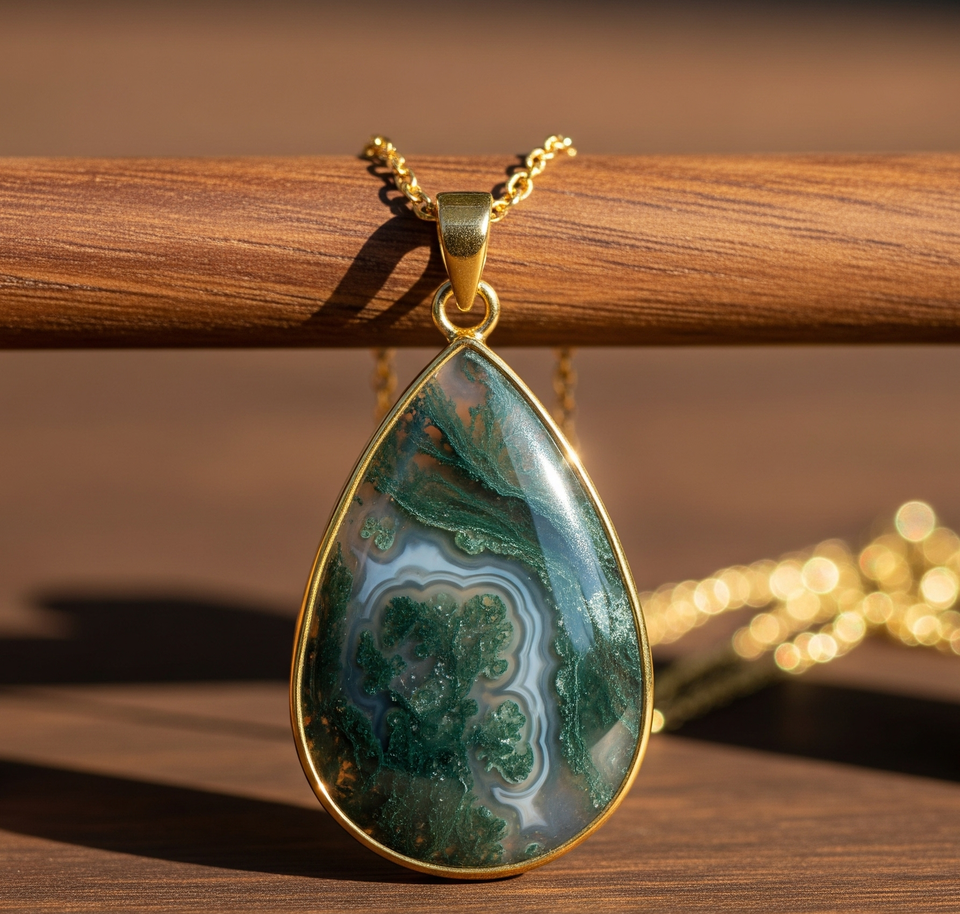 ทำด้วยมือฝังขอบหินโมรามอสสร้อยคอจี้925เงินสเตอร์ลิงเครื่องประดับอัญมณีแฟชั่นที่กำลังมาแรง