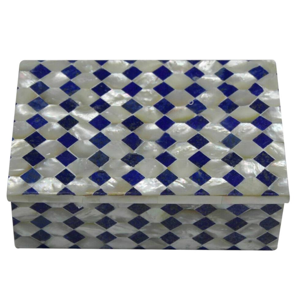 กล่องเก็บเครื่องประดับหินลาพิสและมุกทำมือ งานฝีมือสั่งทำพิเศษ ลายโมเสกหรูหรา ประดับด้วยหินกึ่งมีค่า ปรับแต่งได้