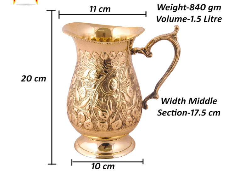 เหยือกน้ำทองเหลืองสไตล์มุกฮาล งานฝีมือ สำหรับเสิร์ฟเครื่องดื่มแบบดั้งเดิม
