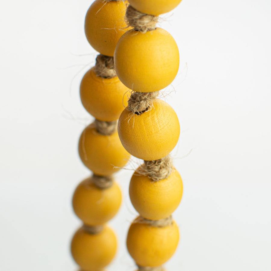 พวงมาลัยลูกปัดไม้สีเหลืองทำด้วยมือแบบใหม่สำหรับตกแต่งโต๊ะเพิ่มความหรูหราให้กับการตกแต่งภายในบ้านฟาร์มโบโฮลูกปัดไม้ธรรมชาติที่สมบูรณ์แบบ