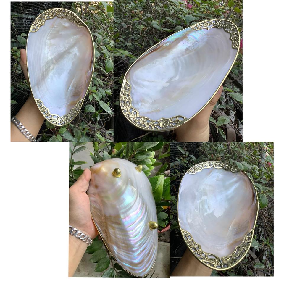 Handcrafted Nacre Shell Platters: Large Mother of Pearl Plate & Spoon Collection Artisan Accessories for Display (Up to 31cm)