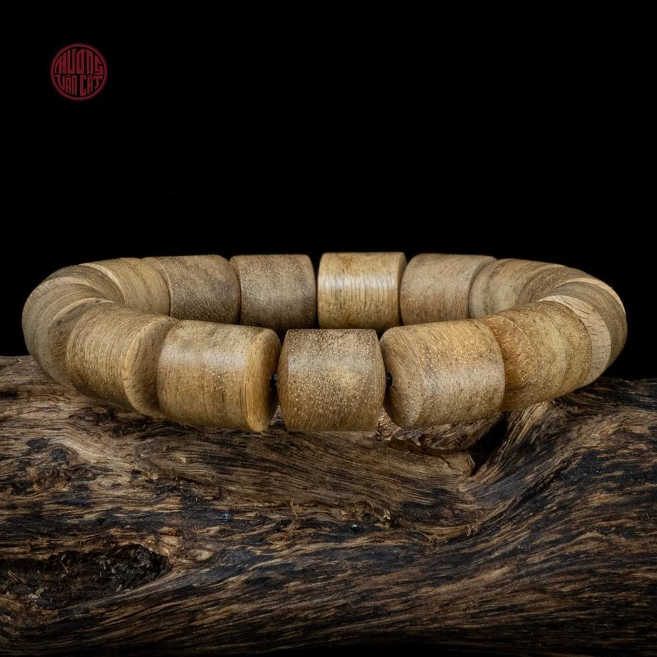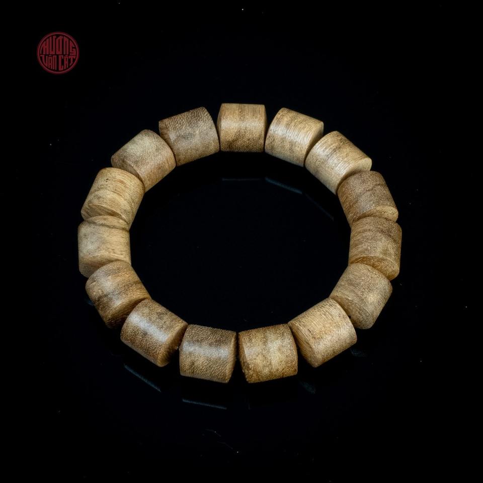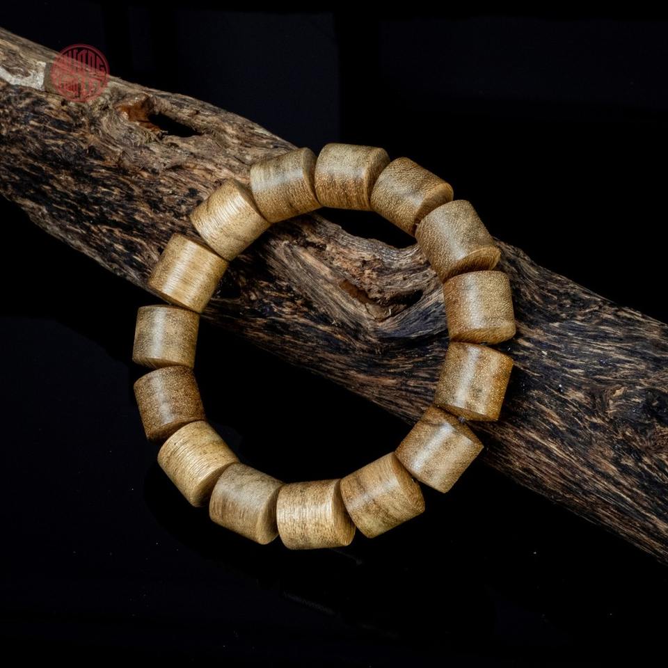กำไลข้อมือไม้กฤษณาธรรมชาติทำมือ ลูทอง ขนาด 12 มม. เม็ดทรงกระบอก เกรด 2 เครื่องประดับไม้กฤษณา