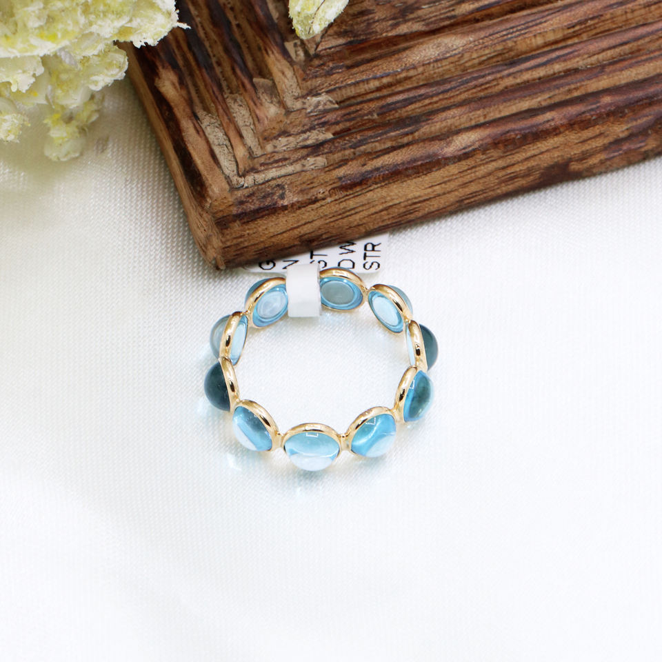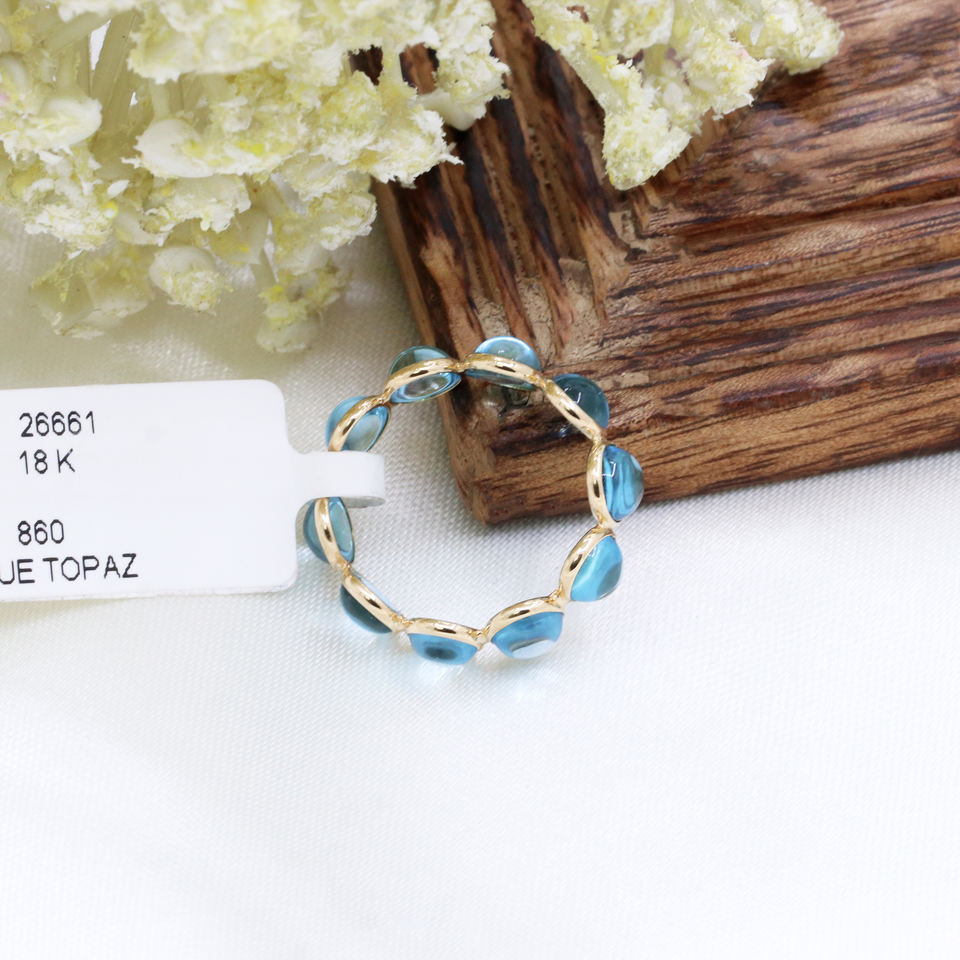 แหวนพลอยบุษราคัมสีฟ้าทำด้วยมือออกแบบทรงกลมสำหรับสตรีแหวนทองคำ18K สีเหลืองขายส่ง