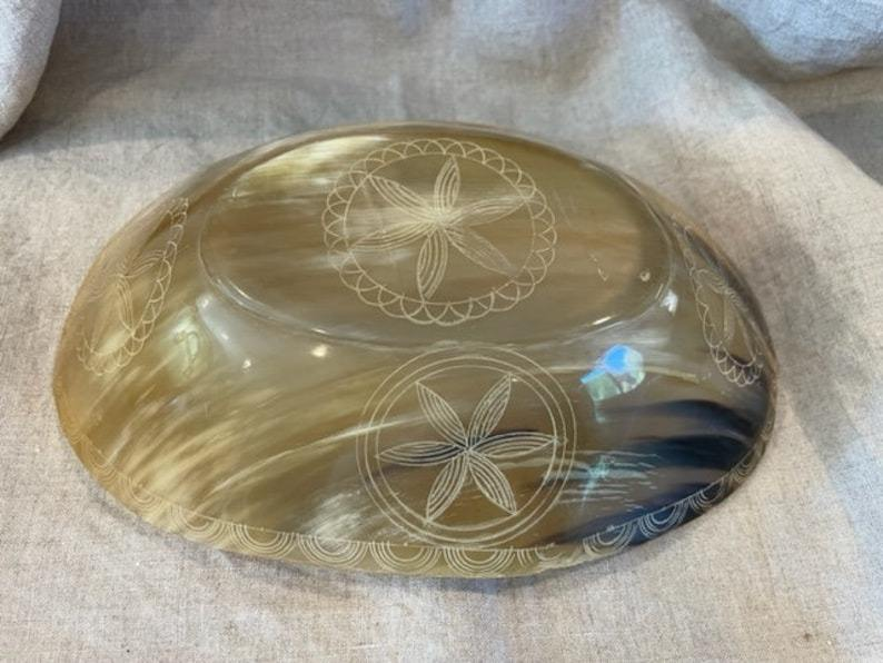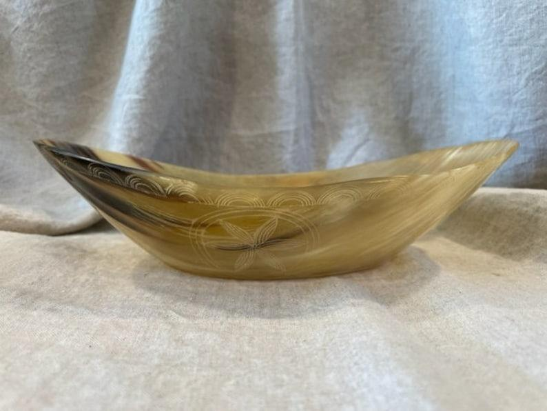ชามเขาควายธรรมชาติทำมือ งานฝีมือประณีต ขัดเงาอย่างดี สำหรับใส่ของหวาน ผลไม้แห้ง ภาชนะบนโต๊ะอาหาร งานศิลปะ ทำมือ พกพาสะดวก