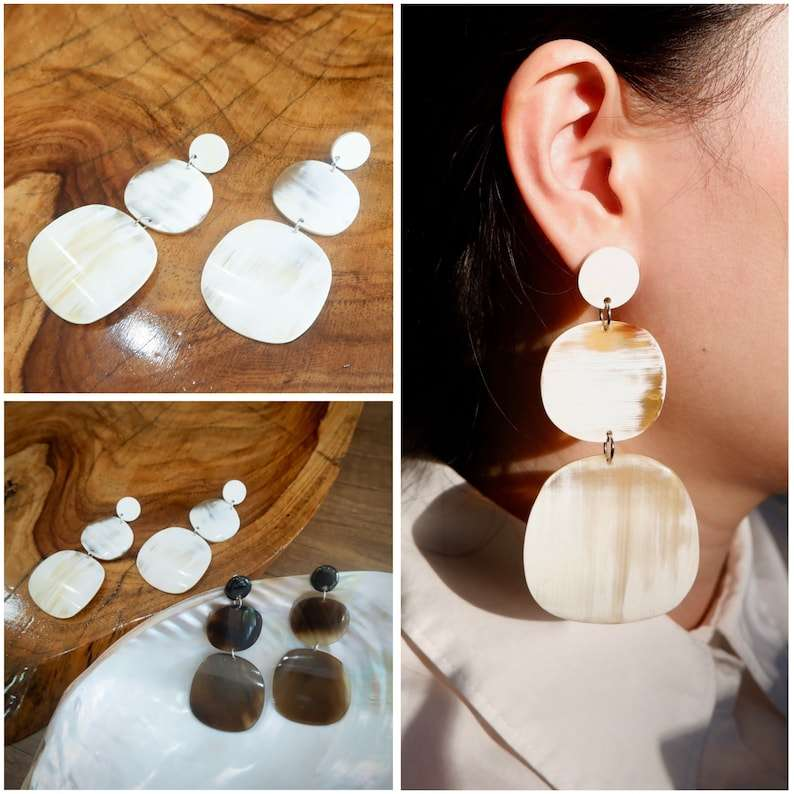 Handcrafted Natural Buffalo Horn Fashion Earring For Women by glowin fashion