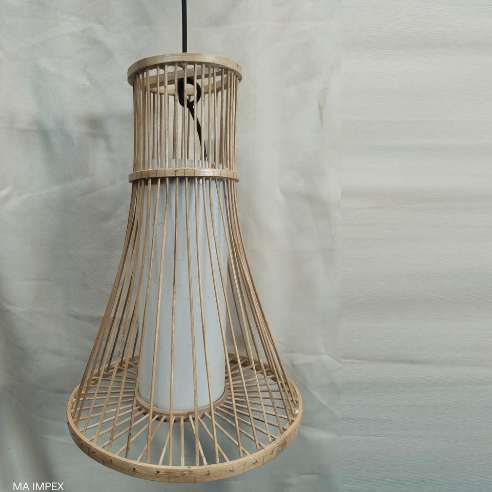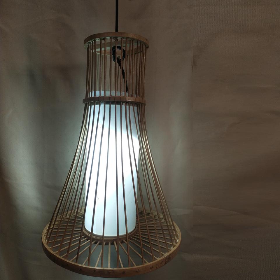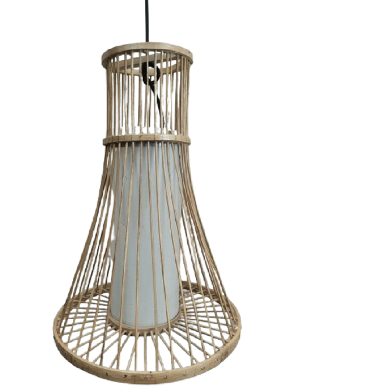 โคมไฟห้อยเพดานทำมือจากไม้แคนูธรรมชาติ | โคมไฟระย้าทรงกรวยไม้ไผ่สไตล์มินิมอลแบบญี่ปุ่น | เป็นมิตรกับสิ่งแวดล้อม