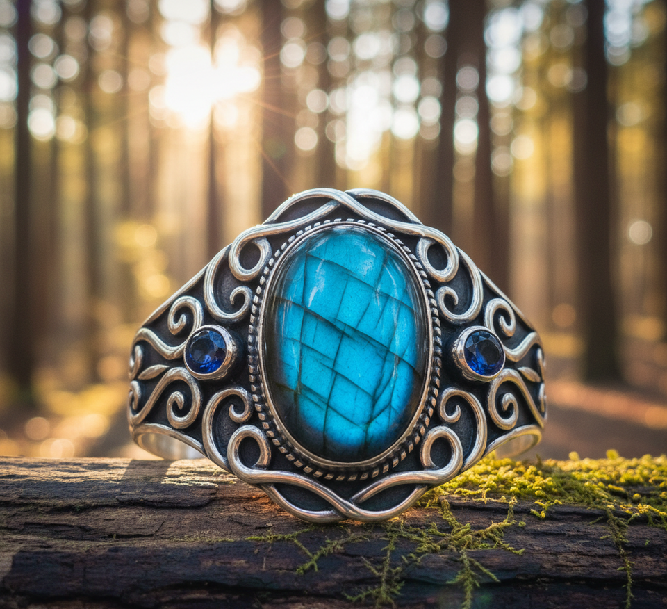 กำไลลูกปัดเงินสไตล์โบฮีเมียนสำหรับผู้ชายทำจากเงินลาบราดอไรต์ธรรมชาติทำด้วยมือคุณภาพสูงแบบทิเบต