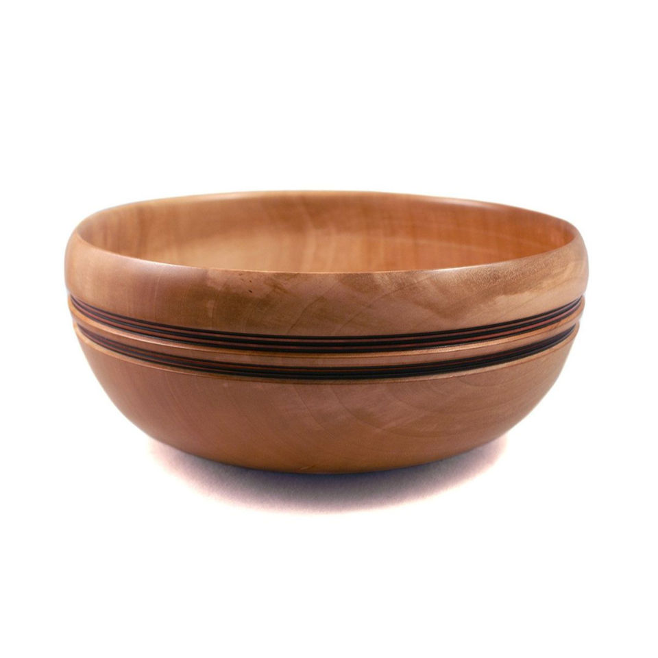 ชามไม้ธรรมชาติทำมือ ลายเส้นสีดำ ชามเสิร์ฟตกแต่ง ภาชนะครัว ชามผลไม้หรือสลัด งานแฮนด์เมด ทรงกลม
