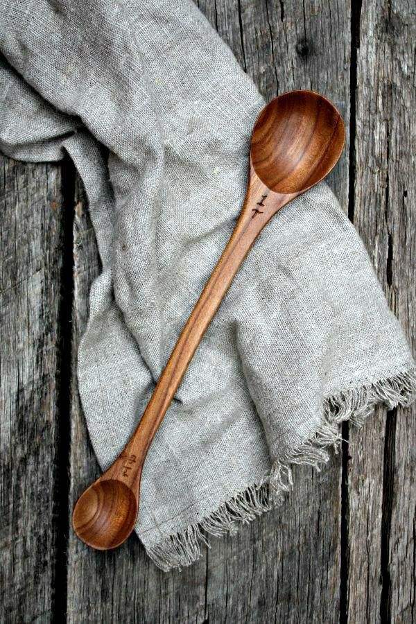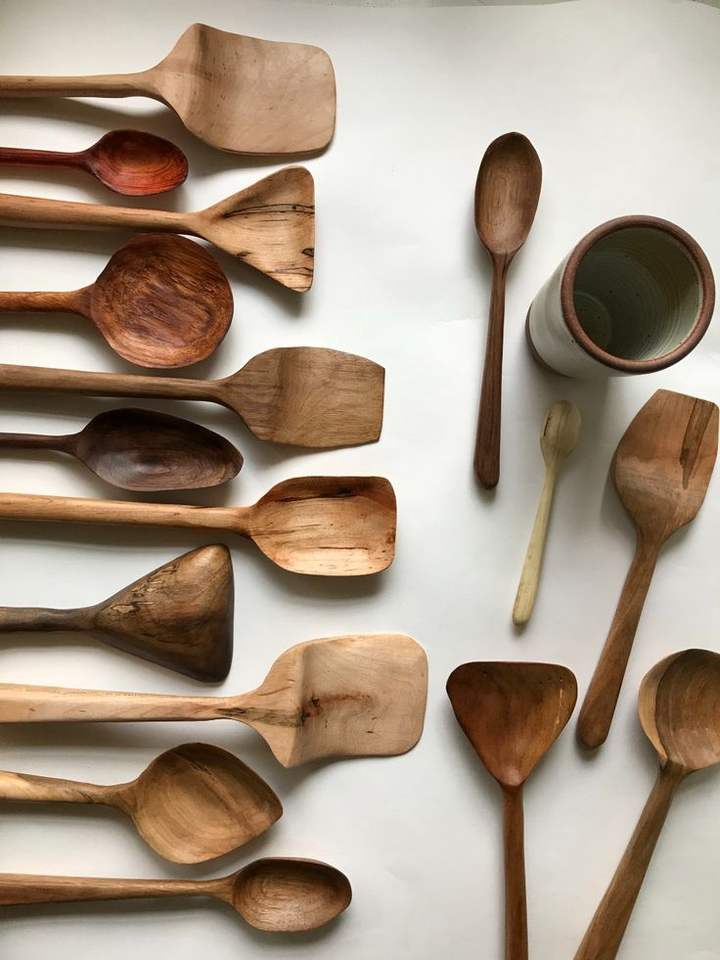 ชุดช้อนไม้มะม่วงและไม้กระถินเทศทำมือจากวัสดุธรรมชาติที่ยั่งยืน พร้อมลายเคลือบบนด้ามจับ เป็นมิตรกับสิ่งแวดล้อม