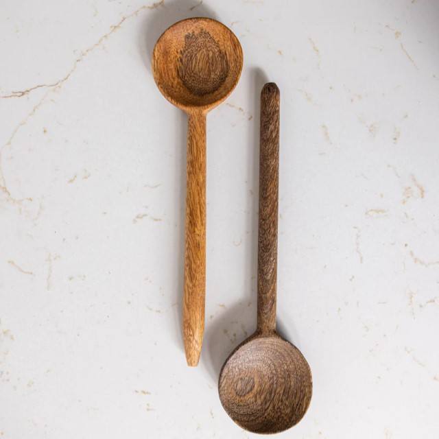 ชุดเซ็ตสลัดไม้มะม่วงทำด้วยมือทำจากธรรมชาติช้อนตักช้อนไม้ที่จับยาวอุปกรณ์ครัวทนทาน