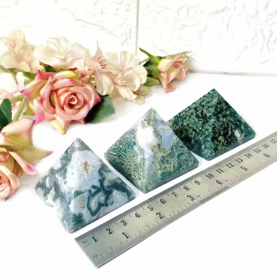 Handcrafted Natural Moss Agate Crystal Pyramid Polished Healing Stone for Energy Feng Shui & Home Decor Gemstone Material
