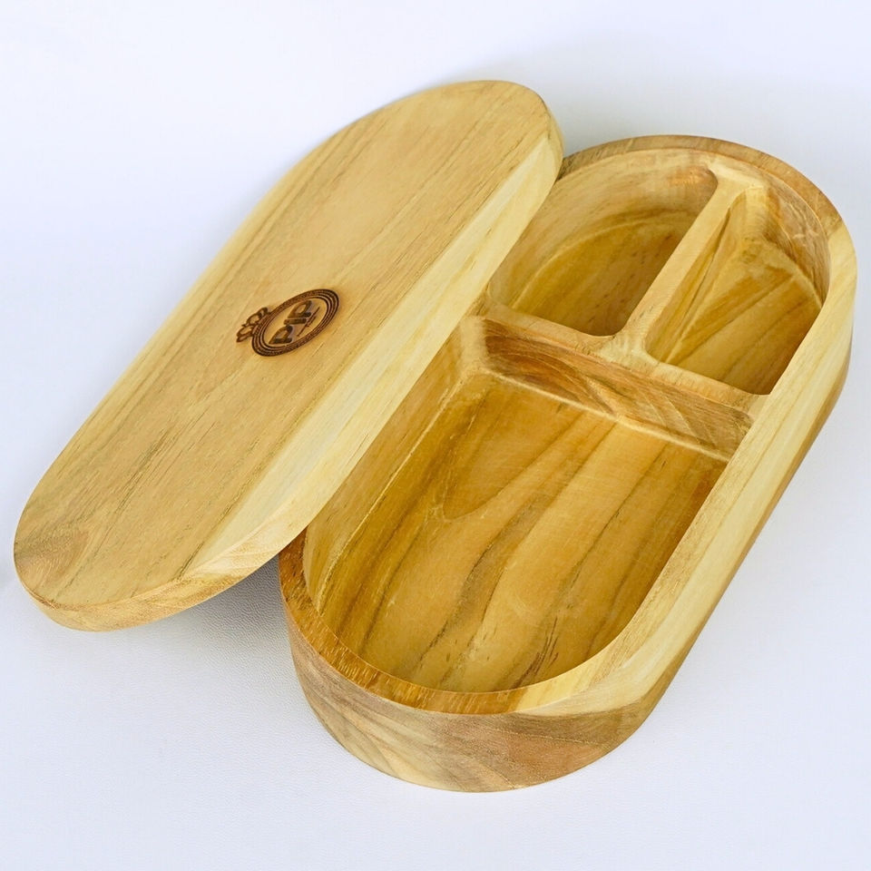 กล่องข้าวทำจากไม้สักธรรมชาติทำมือภาชนะใส่อาหารเป็นมิตรกับสิ่งแวดล้อมพร้อมจานสำหรับใช้ในชีวิตประจำวัน