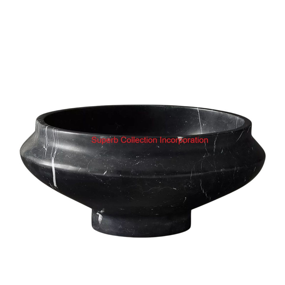 Handcrafted Natural White & Black Marble Serving Bowls Set Elegant Decorative Fruit Bowls For Luxury Kitchen & Home Decor