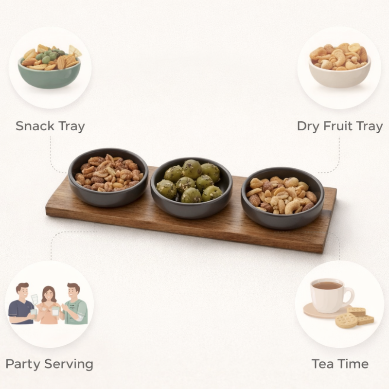 ถาดเสิร์ฟไม้ธรรมชาติทำมือ ขนาด 10”x5.5” | ถาดไม้สไตล์เรียบง่ายสำหรับชา กาแฟ ขนม ของว่าง ตกแต่งเคาน์เตอร์ครัวและโต๊ะกาแฟ