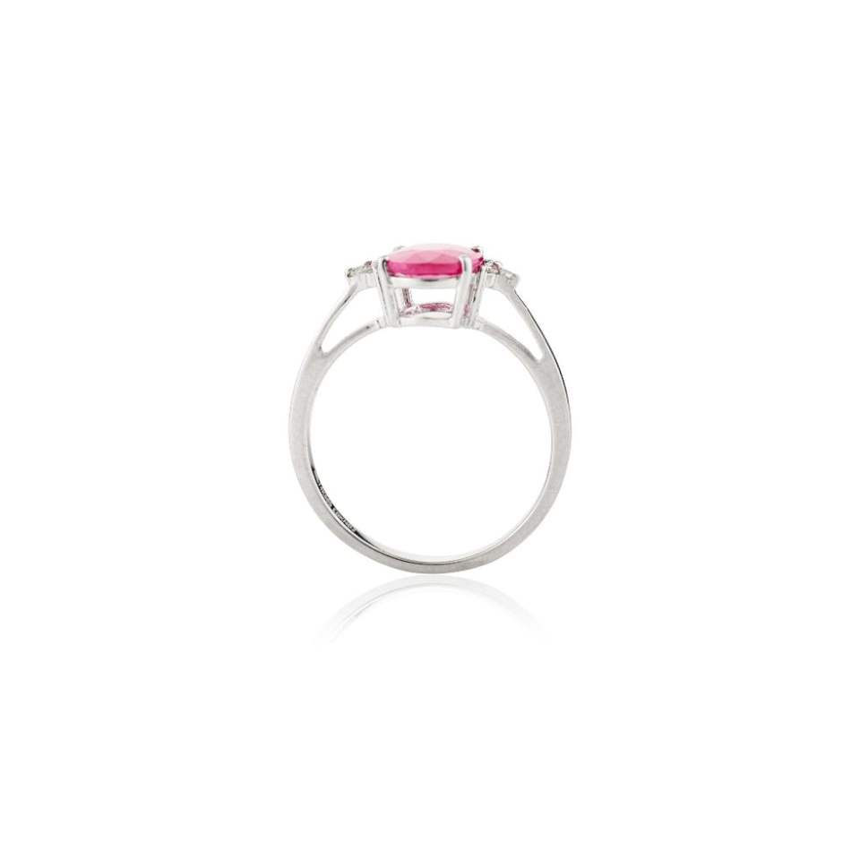แหวนเพชรสามเม็ดทำด้วยมือดีไซน์ใหม่หรูหราทรงรีตัดด้วยทับทิมและเพชรทรงรีตามต้องการ14K สีทองขาว