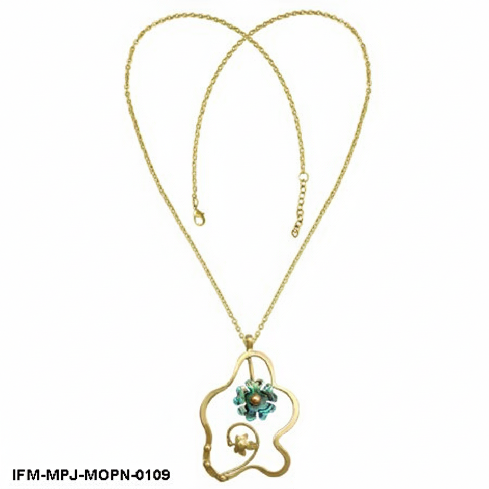 สร้อยคอจี้ดอกไม้ทำมือจากมุกแท้แบบเปิด ชุบทอง เครื่องประดับสไตล์พฤกษศาสตร์สำหรับผู้หญิง