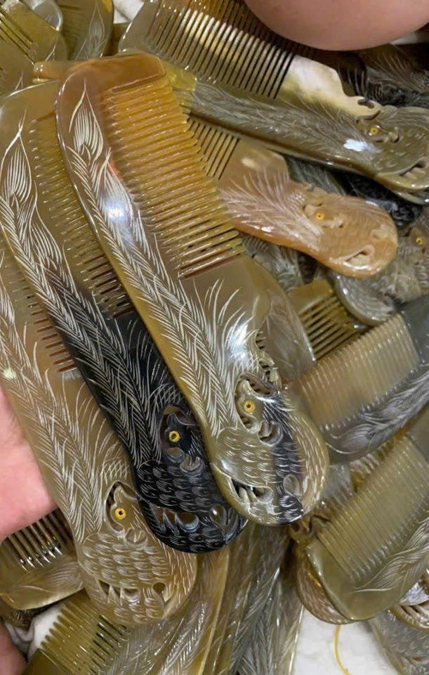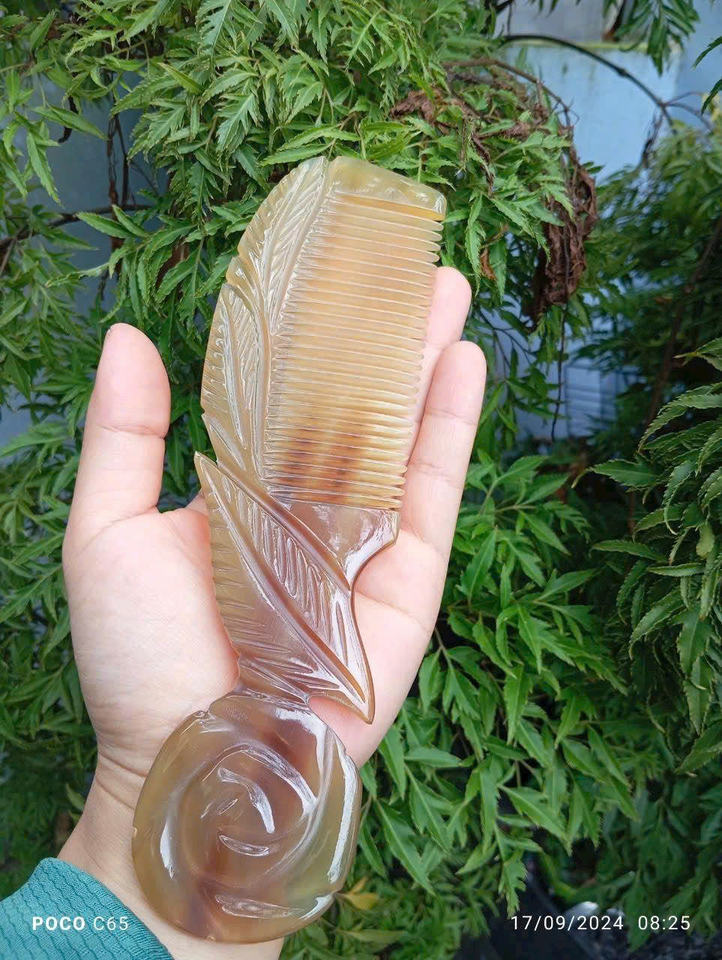 หวีทำมือจากเขาสัตว์ ป้องกันไฟฟ้าสถิตย์ ใช้สำหรับนวดหนังศีรษะ ดูแลเส้นผมทุกวัน ผลิตจากวัสดุเคราตินแบบดั้งเดิม สำหรับการจัดแต่งทรงผม