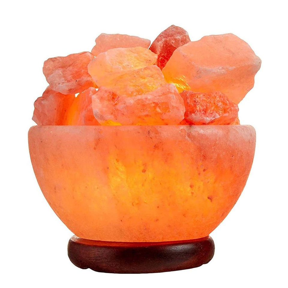 โคมไฟเกลือหิมาลัยสีชมพูทำด้วยมือเป็นมิตรกับสิ่งแวดล้อมของตกแต่งด้วยตะกร้าและดอกไม้สำหรับฮวงจุ้ยรักสไตล์