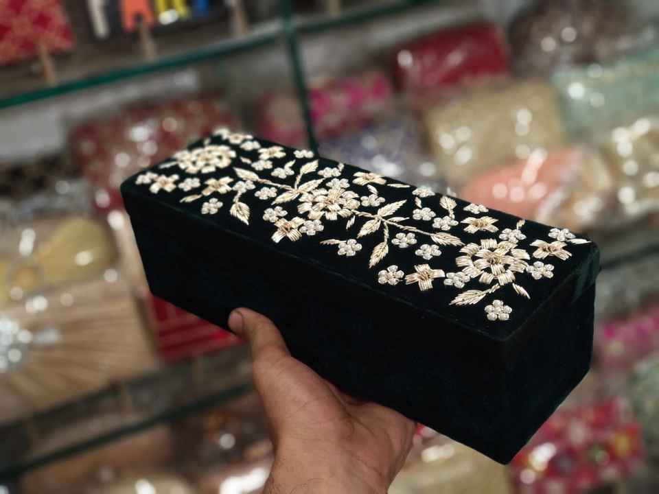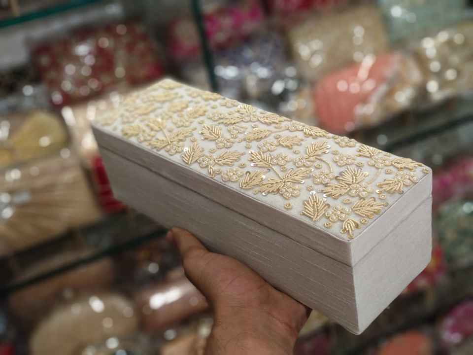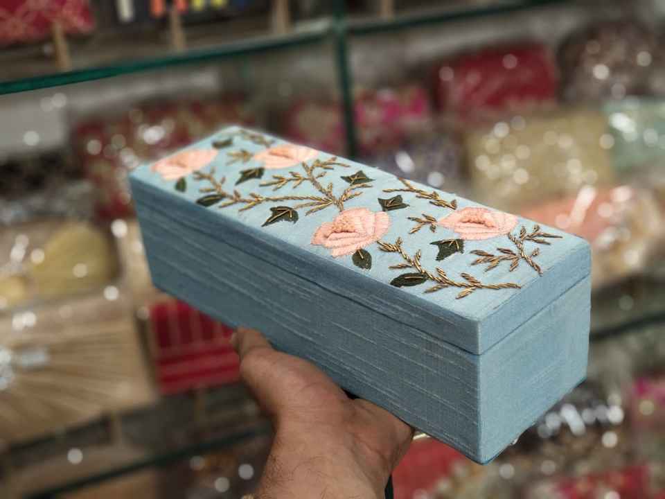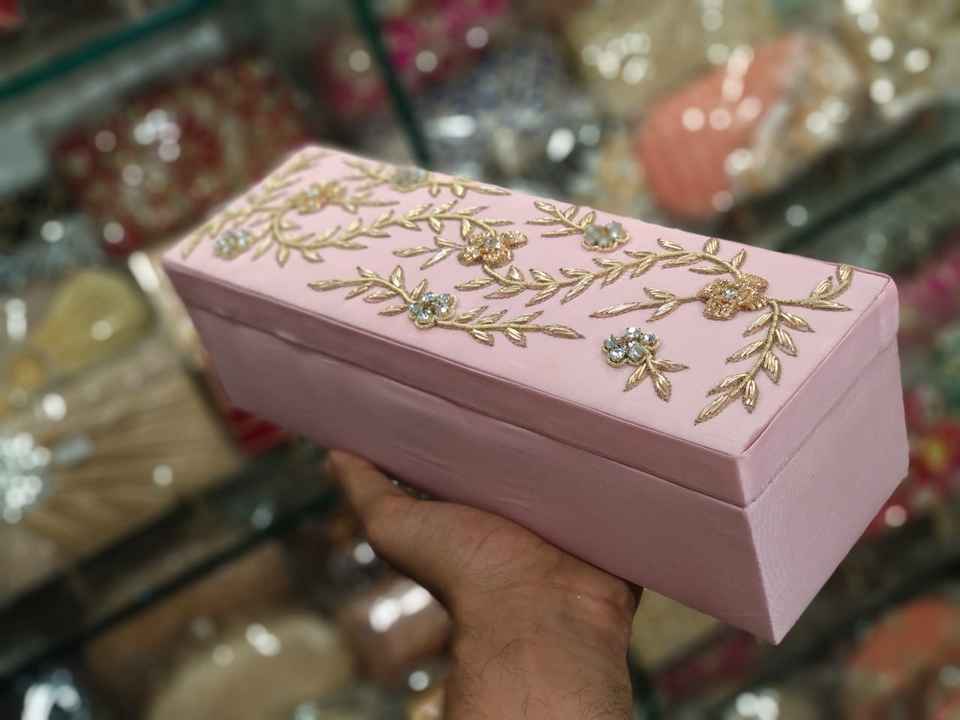 กล่องเครื่องประดับผ้าซาตินสีชมพูทำด้วยมือปักเลื่อมสีทองลายดอกไม้ของขวัญสำหรับเจ้าสาวสำหรับกำไลสั่งทำกล่องดอกไม้