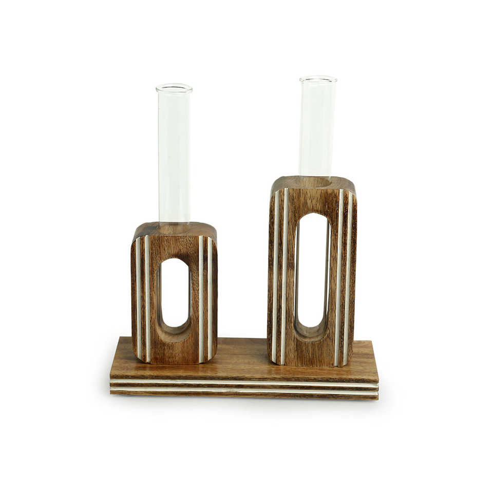 PLANTER TUBE: Glass, HOLDER: Mango Wood