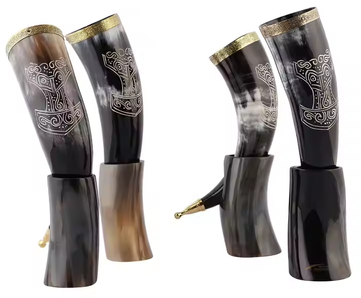 แก้วดื่มไวกิ้งทำด้วยมือขัดเงาและแกะสลักเป็นเอกลักษณ์สไตล์สัตว์ของตกแต่งบ้านด้วยงานฝีมือรูปพระจันทร์เสี้ยว