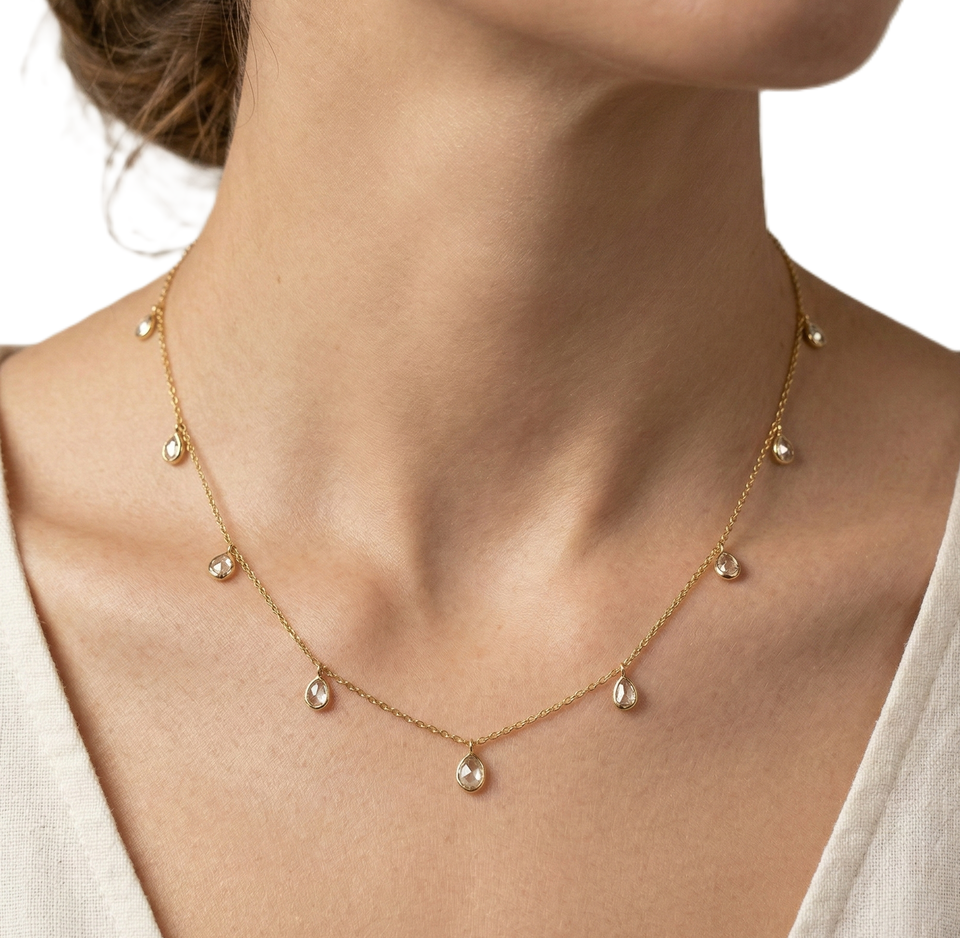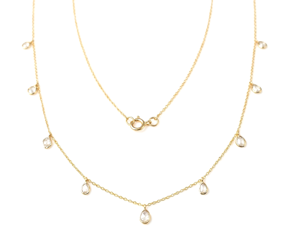 สร้อยคอเพชรโพลกี้ทำมือ ทองคำแท้ 10K 14K รูปทรงลูกแพร์ เพชรแล็บ สไตล์มินิมอล เหมาะสำหรับใส่ซ้อนกัน เป็นของขวัญสำหรับเธอ