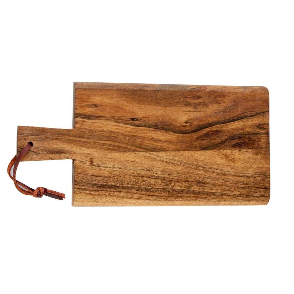 เขียงไม้อะคาเซียทำด้วยมือแบบพรีเมี่ยมพร้อมด้ามจับที่เป็นเอกลักษณ์พร้อมแผ่นตัดด้ายไม้ธรรมชาติสำหรับใช้ในครัว