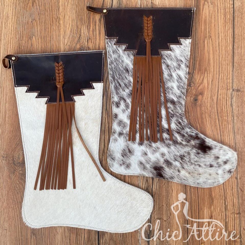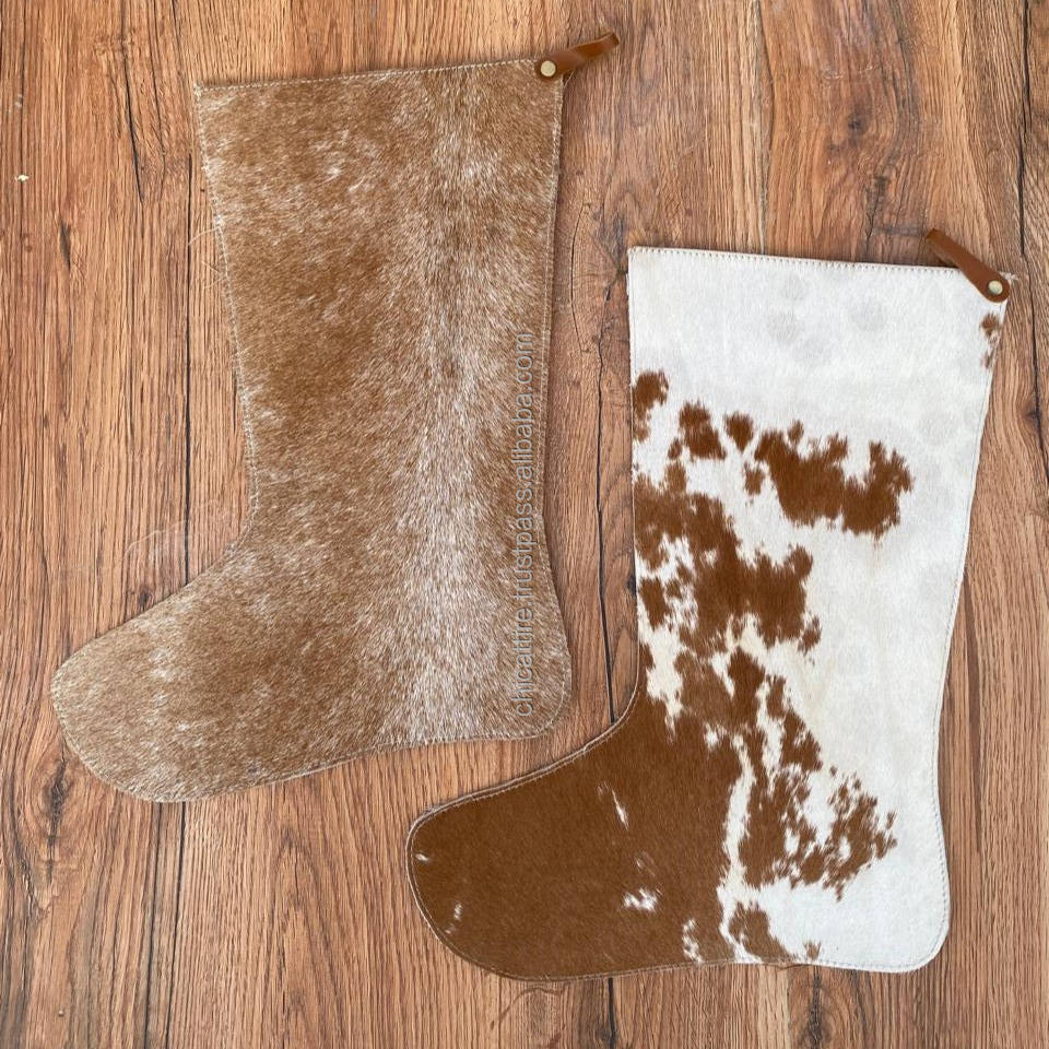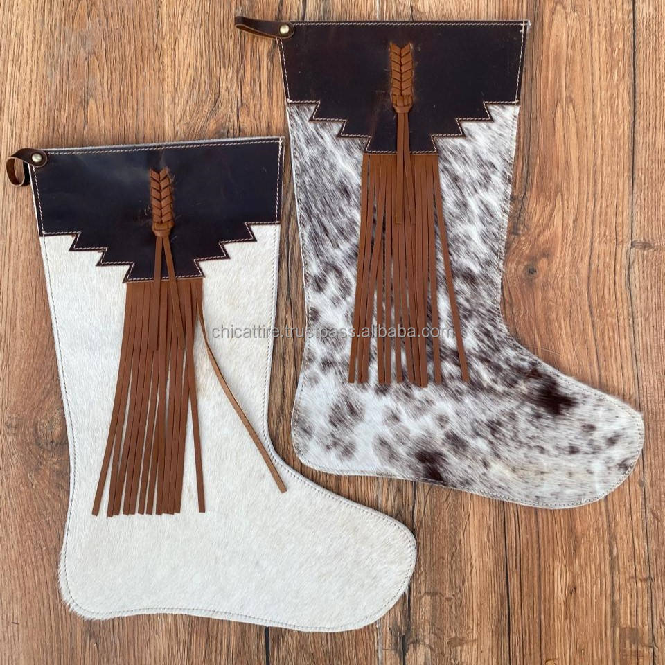 ถุงน่องคริสมาสต์สำหรับวันหยุดเทศกาลคริสต์มาสทำด้วยมือหนังแท้และคาวบอยหนังวัวขอบเรียบขนาด16"
