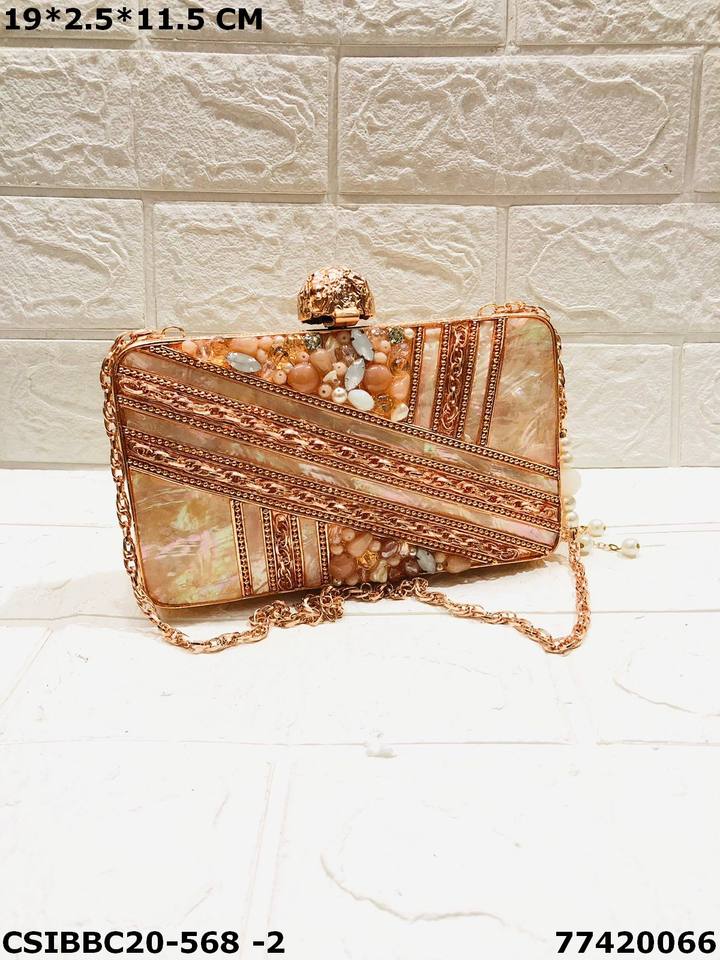 กระเป๋าคลัทช์งานกลางคืนสวยสดใสทำมือด้วยหินคริสตัลและไม้ถูพื้นทองเหลืองรายละเอียดซับซ้อนเหนือกาลเวลา