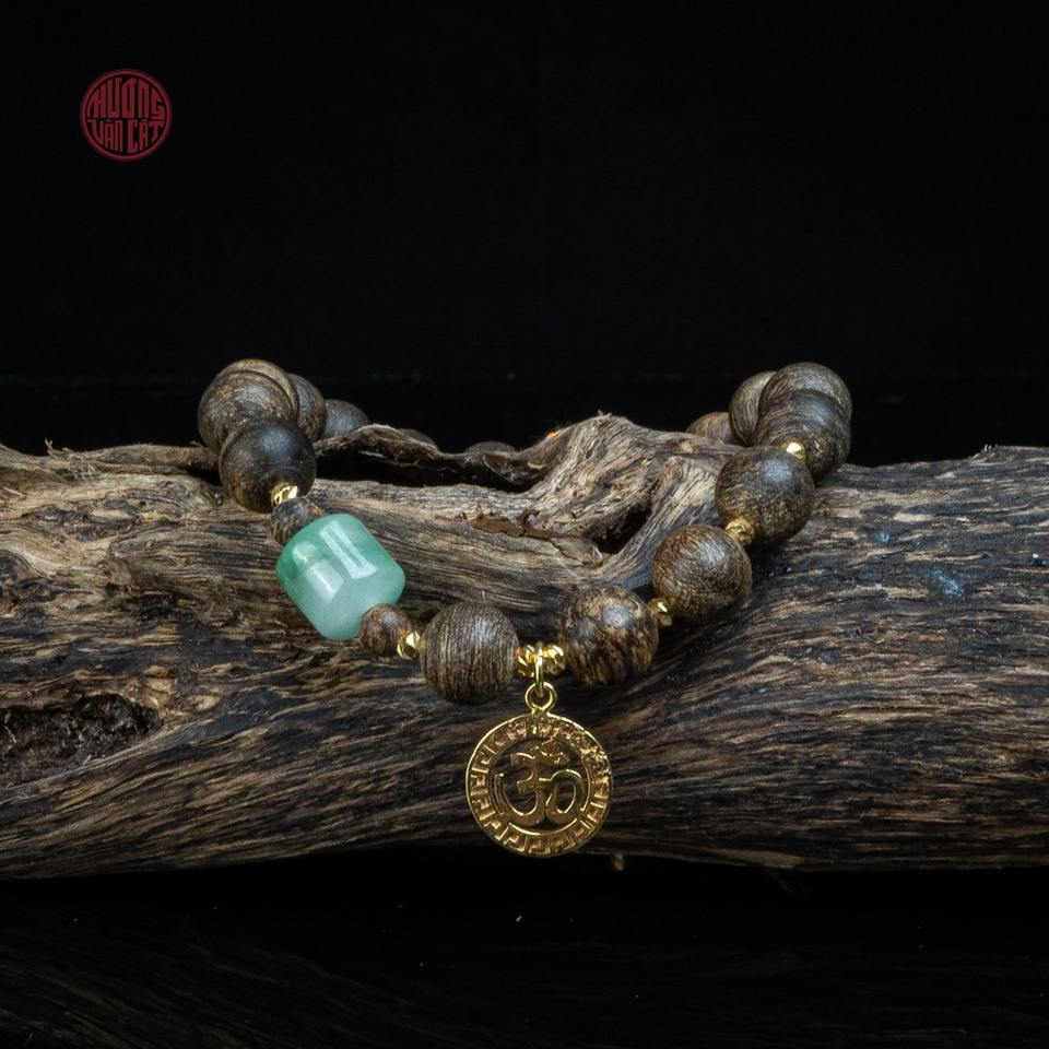 ทำด้วยมือหายากสร้อยข้อมือ agarwood 8mm สีทองผสมและลูกปัด jadeite เครื่องประดับหรูหรา