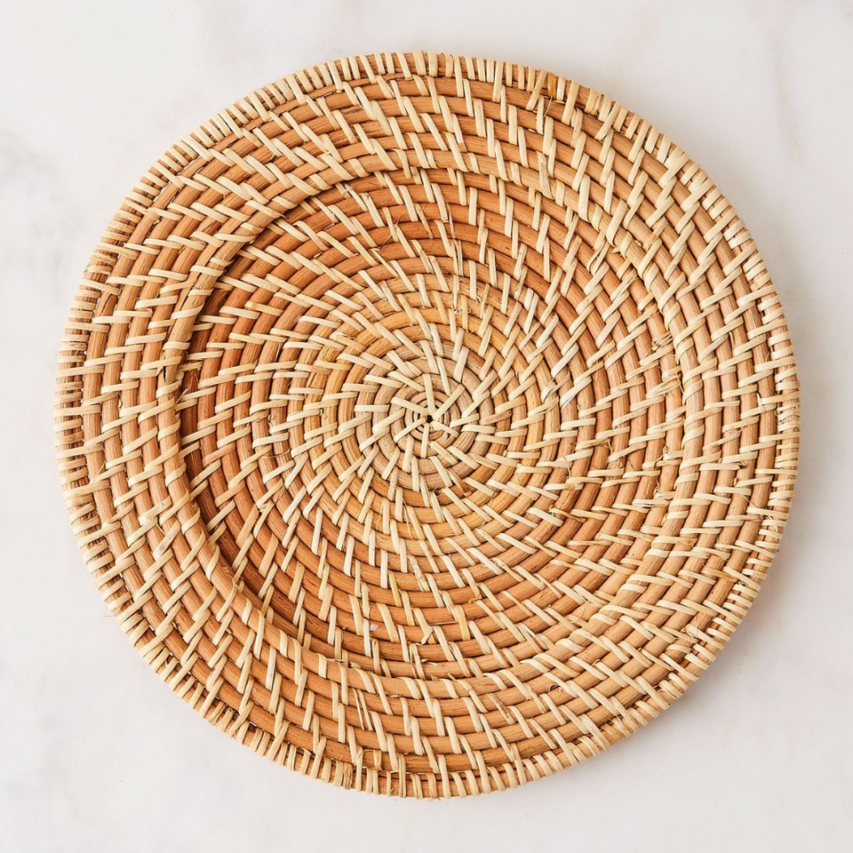 จานรองอาหารหรูหราสำหรับงานแต่งงานและงานเลี้ยง ผลิตจากหวายทำมือ เป็นมิตรกับสิ่งแวดล้อม ปรับแต่งสี/ขนาดได้ ทนทาน