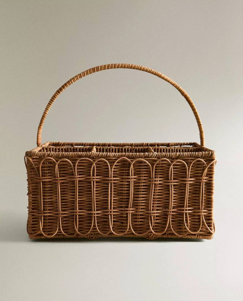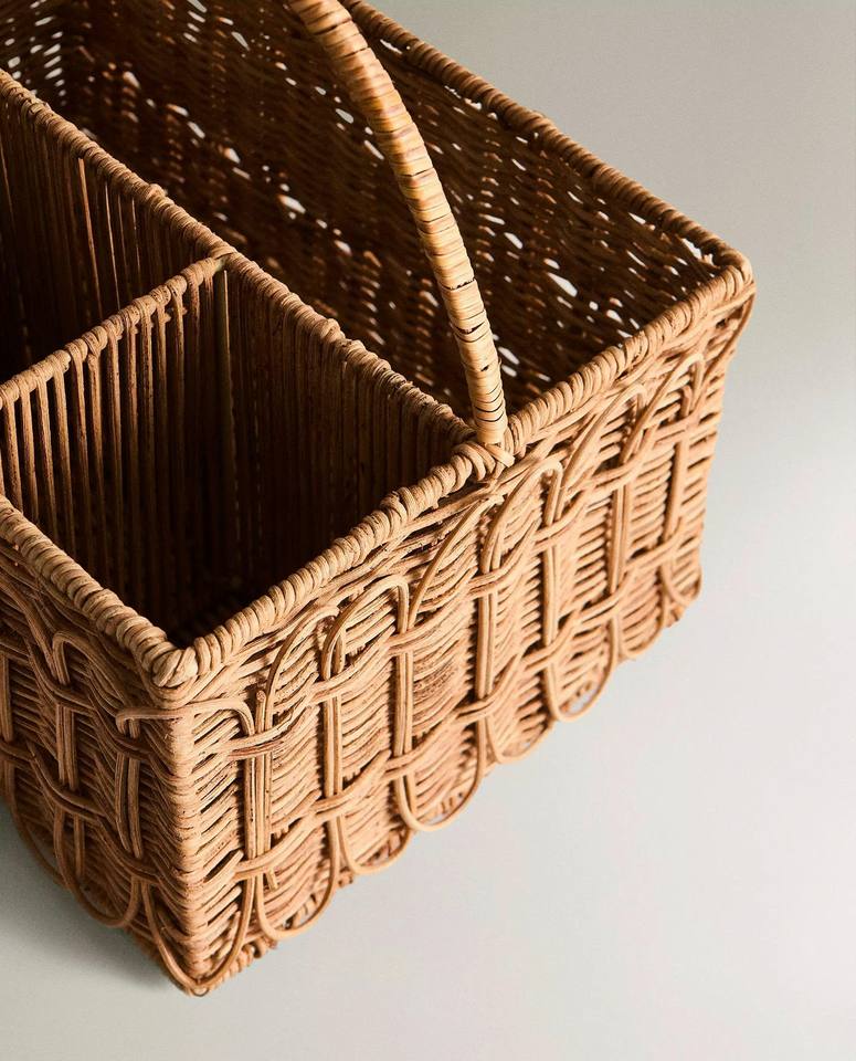 Handcrafted Rattan Cutlery Caddy Woven Utensil Holder with Arched Handle, Multipurpose Woven Organizer for Festive Dining & Home