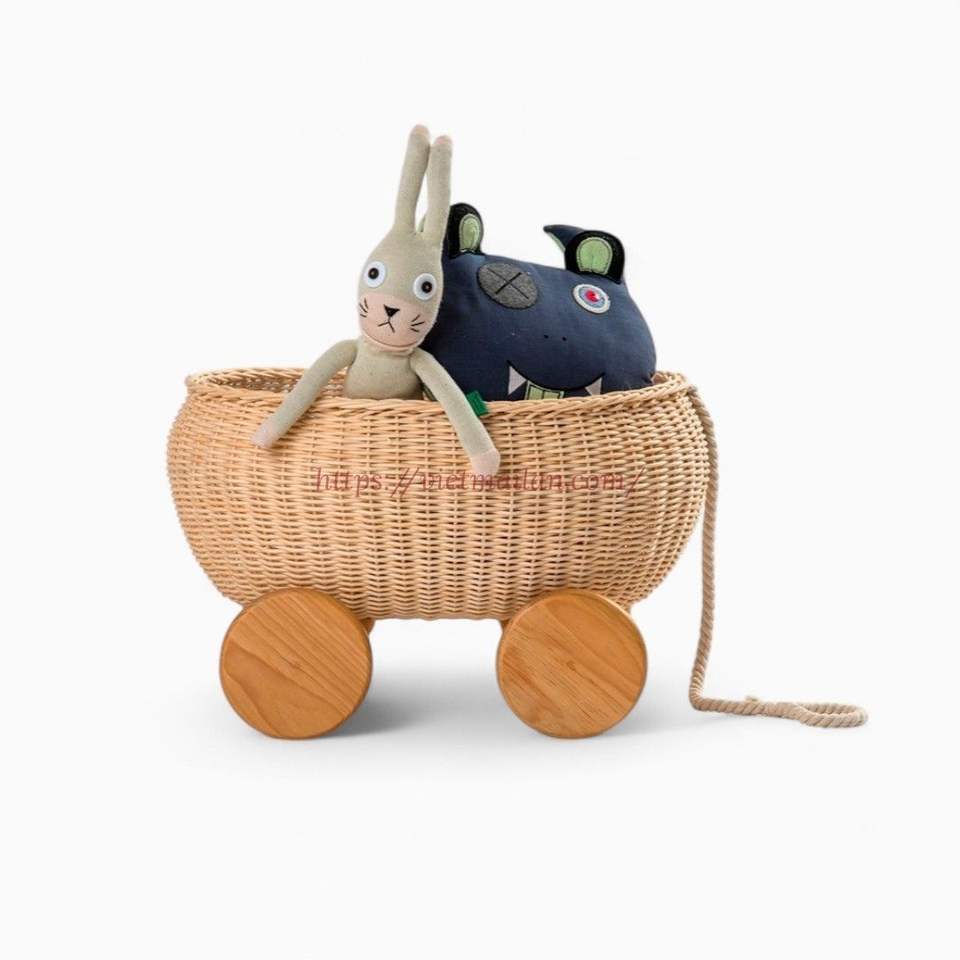 รถเข็นหวายทำมือสำหรับตกแต่งสถานรับเลี้ยงเด็กและตุ๊กตาทารกทำจากหวายธรรมชาติคุณภาพสูง