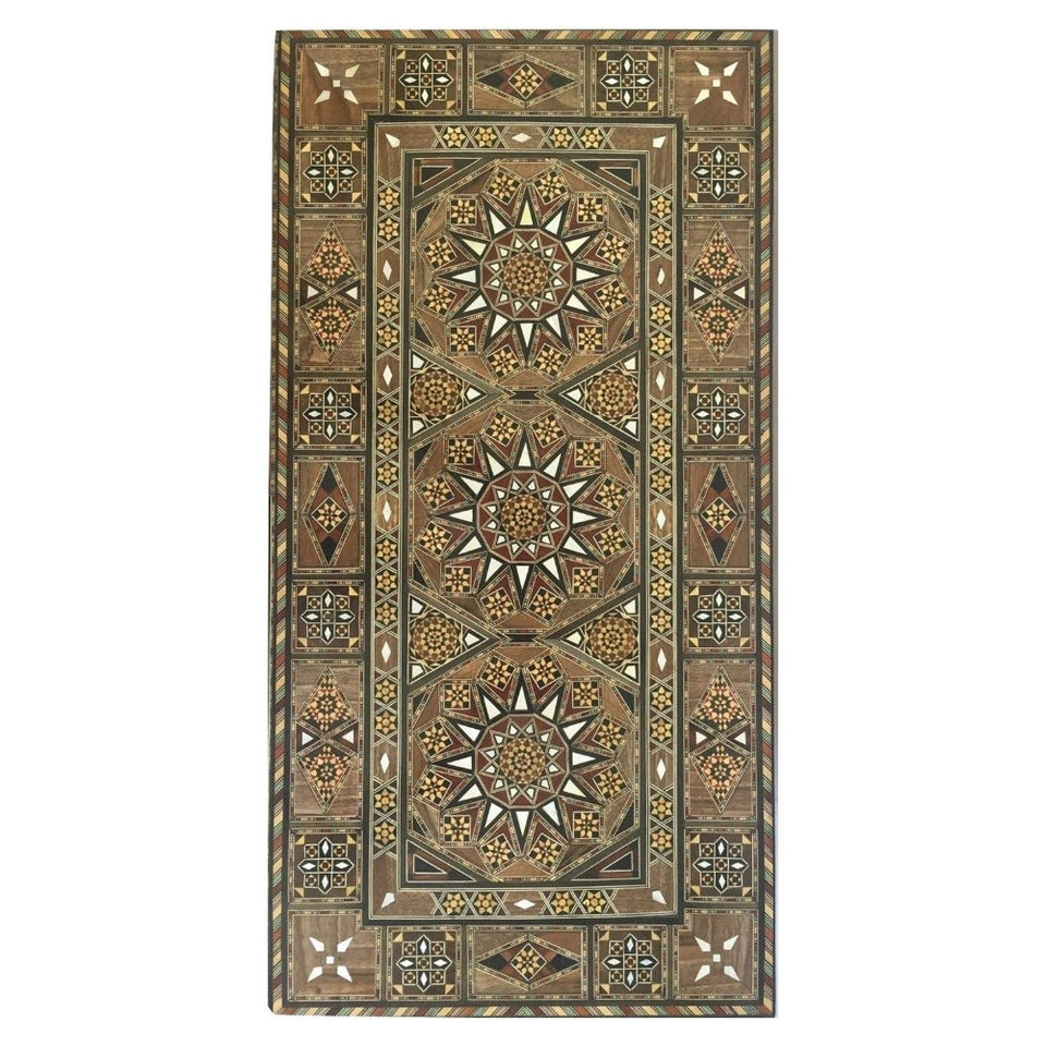 ชุดถาดเสิร์ฟไม้สีน้ำตาลทรงสี่เหลี่ยมทำมือ 2 ชิ้น พร้อมลายฝังสีขาวและทองเหลือง สำหรับใช้ในครัวและถาดเสิร์ฟสไตล์โมร็อกโก