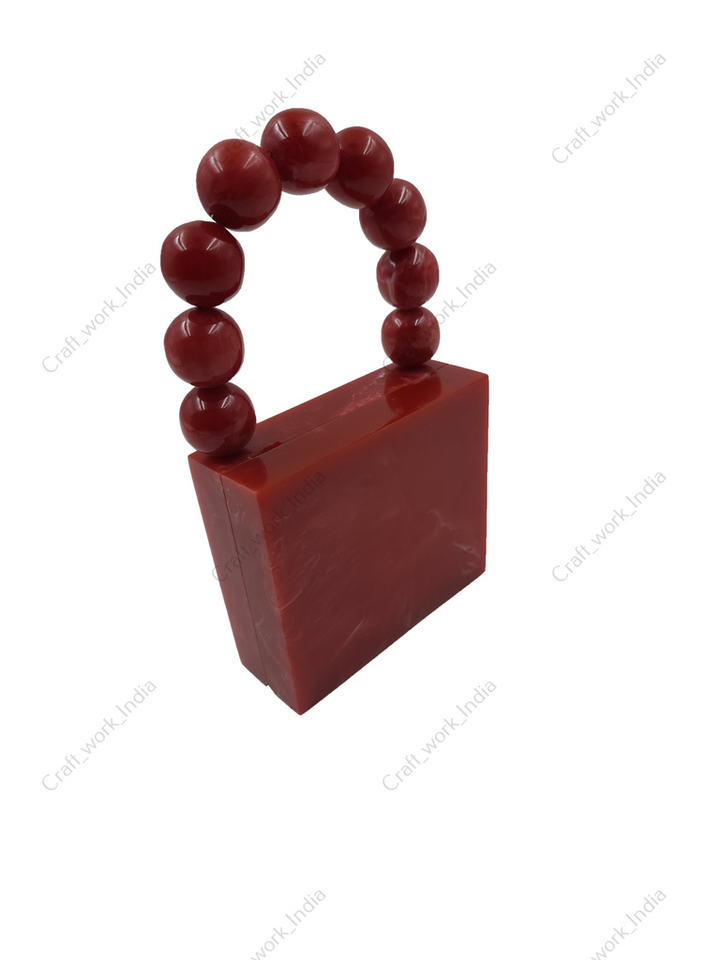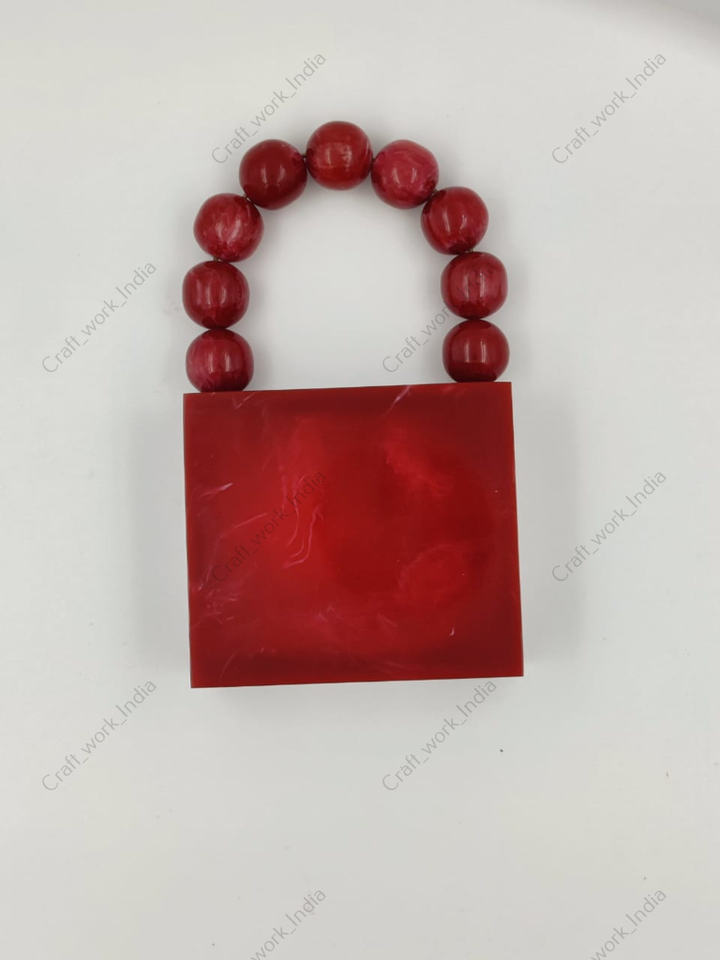 Handcrafted Red Resin Box Clutch Bag With Beaded Handle Luxury Evening Party Wedding Womens Designer Handbag