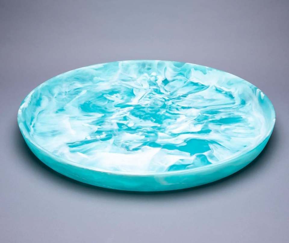 จานเสิร์ฟขนาดใหญ่เนื้อหินอ่อนทำด้วยมือมีดีไซน์หมุนสีชมพูสไตล์หรูหราทันสมัยทนทานสำหรับใช้ในบ้านและโรงแรม
