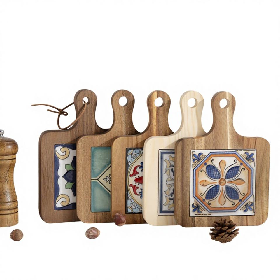 เขียงไม้เนื้อแข็งสไตล์เรโทร งานแฮนด์เมด แกะสลักลายศิลป์ รับทำโลโก้ ทำความสะอาดง่าย ทนทาน เหมาะสำหรับใช้ในบ้านและร้านอาหาร