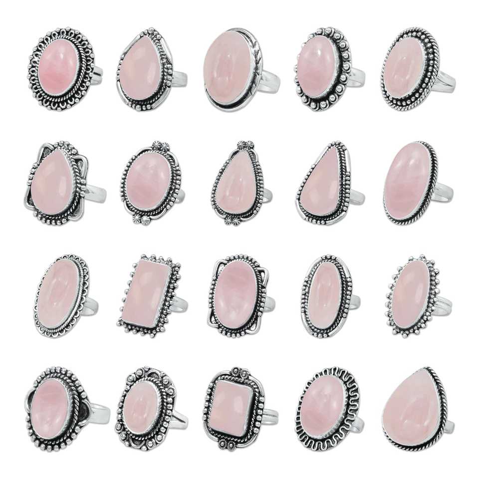 แหวนแต่งงานทำมือจากโรสควอตซ์รูปทรงหลากหลายสำหรับผู้หญิง เครื่องประดับสวยงาม รักแท้ ทำจากเงินแท้ 925