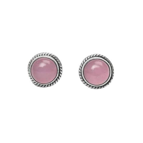 ต่างหูเม็ดเดี่ยวแบบเชือกเงินที่ละเอียดอ่อนทำด้วยมือเครื่องประดับพลอยโรสควอตซ์แบบเรียบง่ายสง่างามของขวัญทองคลาสสิก